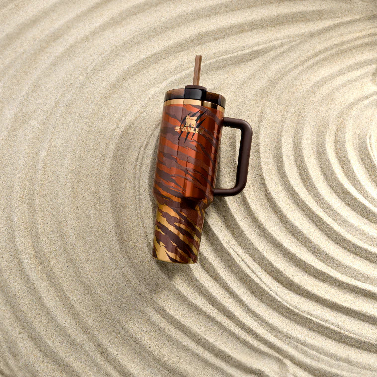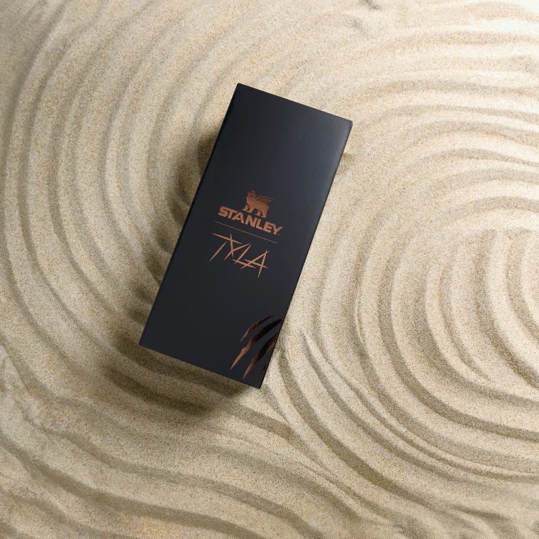 Tyla Tyger Quencher, zengin koyu kahve tonlarıyla kaplanmış dalgalı deseniyle dikkat çeker. Soğuk tonlardan sıcak renklere doğru geçiş yapan metalik gradyan yüzeyi, her hareketinde göz alıcı bir ışıltıyla parlar.